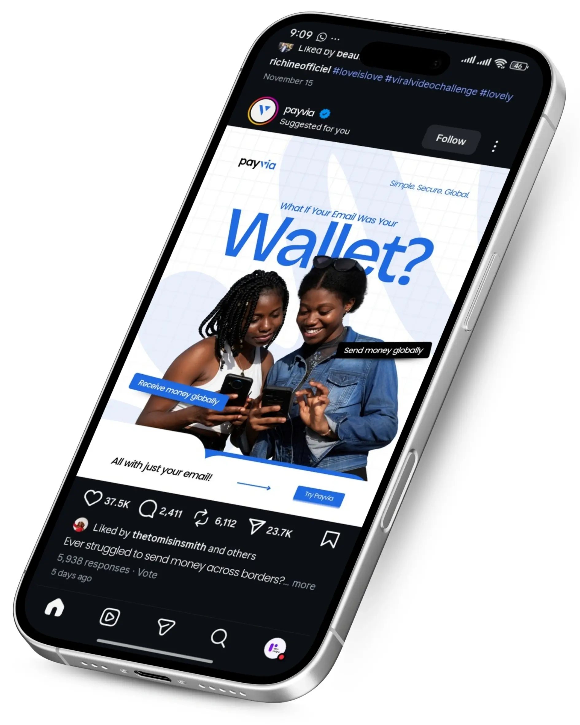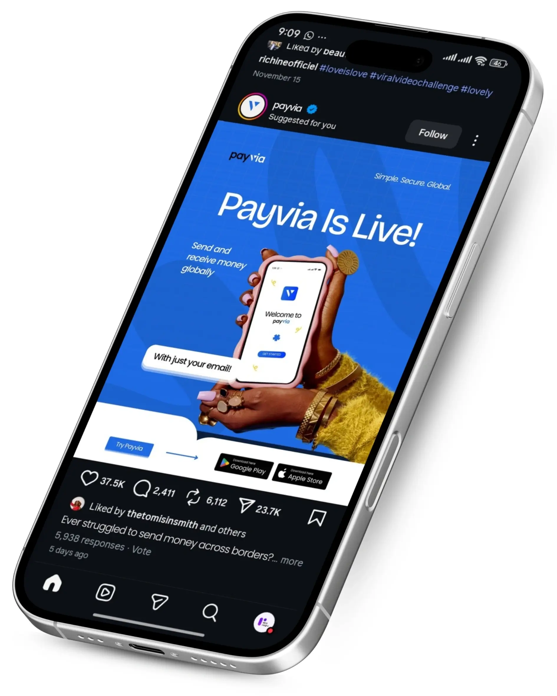 This project is a launch campaign for Payvia, a money app that lets users send and receive money globally using only their email address. The visuals focus on simplicity and ease, making digital payments feel fast and accessible.